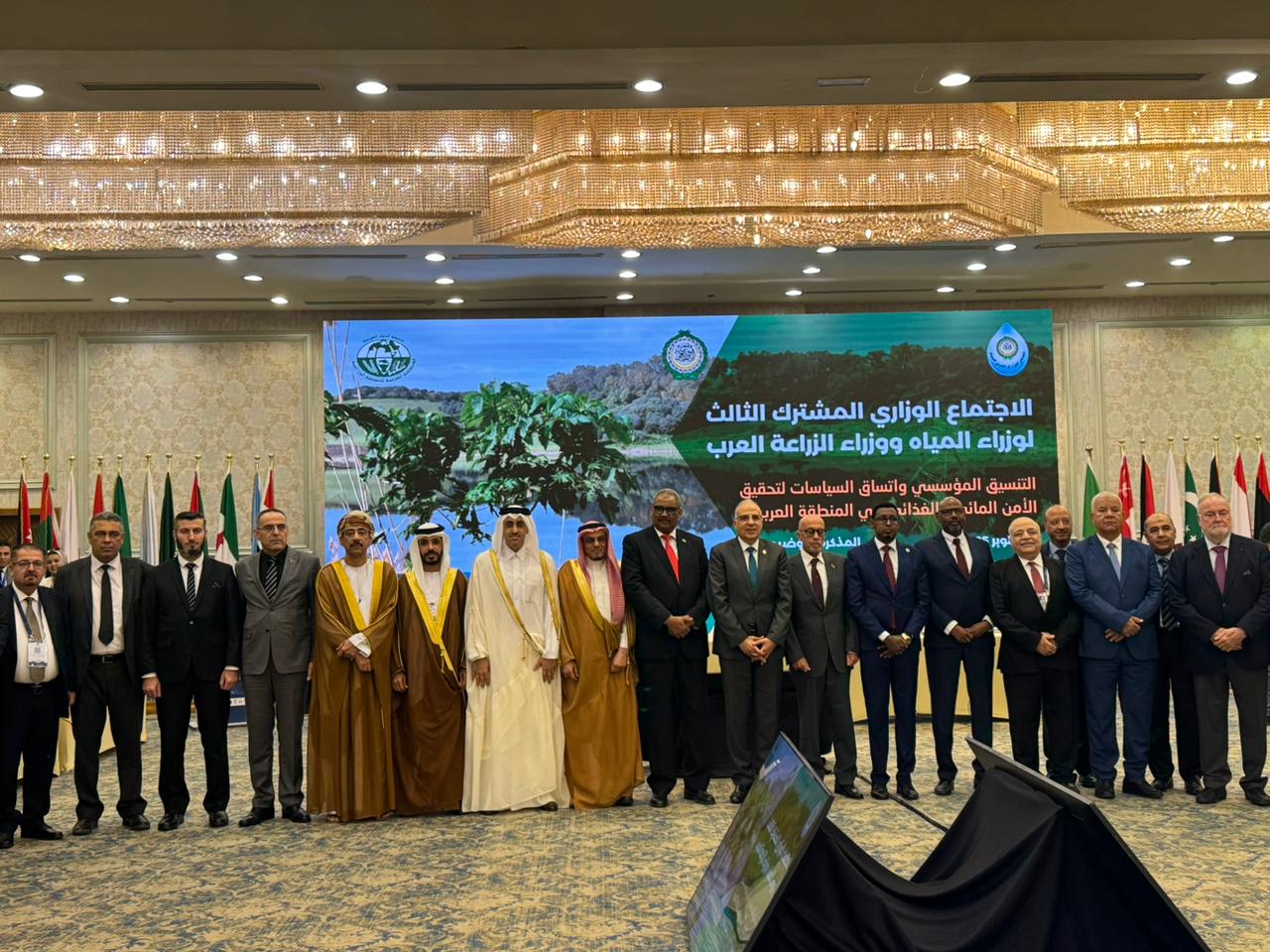 الأمانة العامة تعقد الاجتماع الوزاري المشترك الثالث لوزراء المياه ووزراء الزراعة العرب |  | 2025/10/15 تنظم الأمانة الفنية المشتركة، (المكونة من الأمانة الفنية للمجلس الوزاري العربي للمياه والمنظمة العربية للتنمية الزراعية) الاجتماع الوزاري المشترك الثالث لوزراء المياه ووزراء الزراعة العرب يوم 15 أكتوبر 2025 باستضافة كريمة من وزارة الموارد المائية والري بجمهورية مصر العربية وسبقه الاجتماع السابع للجنة المشتركة رفيعة المستوى بقطاعي الزراعة والمياه يوم 14 اكتوبر2025 على هامش أسبوع القاهرة الثامن للمياه.